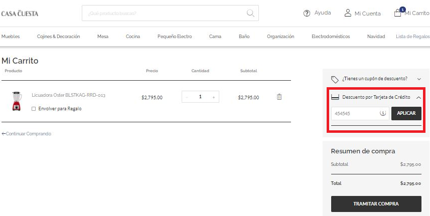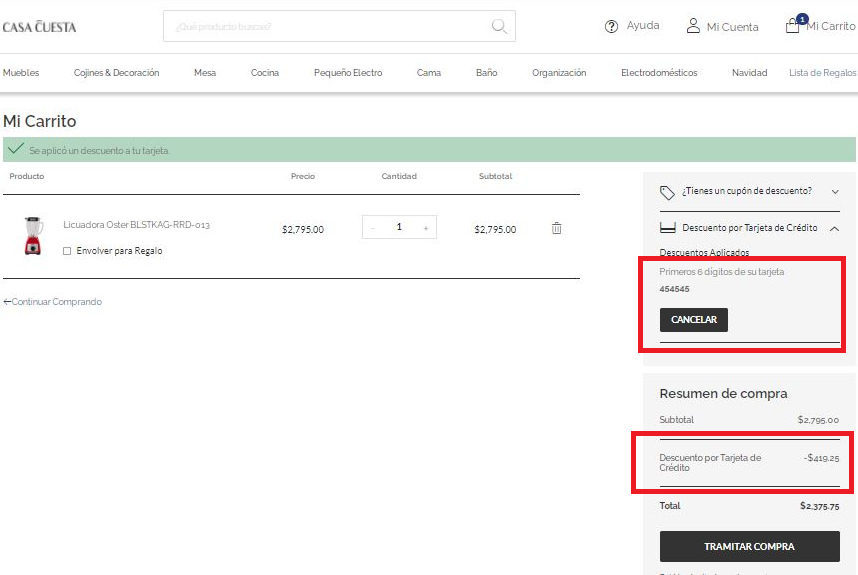 Si realizas la compra a través de Casa Cuesta Online y estás utilizando una tarjeta de crédito personal del Banco Popular,